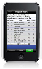 This screen shows how an inspection is performed by individual step. The process involves grading individual cleaning steps. We also tag the employee who performed the work. Pocket Inspection Tool also gives you the option of adding a comment for failed steps thereby creating an audit trail for future training needs.