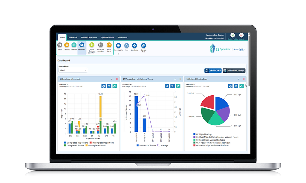 - Department Management Statistics, including: Room Inventory Stats, Cleaning Times, Employees/Shift, Project Work Completed, QA Inspections