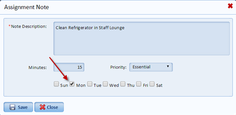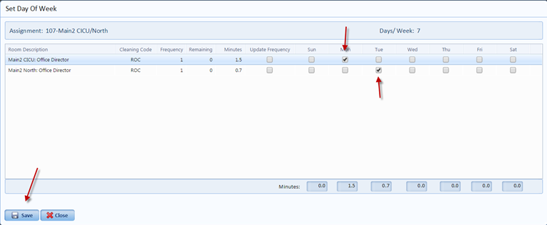 Now all that is left to do is tag the day each office should be cleaned. ES Opti­miz­er makes it easy to see how many min­utes are assigned to each day. When you are sat­is­fied with the results click SAVE.