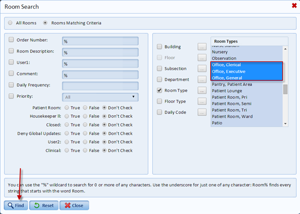 Let’s go through this exam­ple and see how ES Opti­miz­er makes the whole process easy. First, let’s go to Mass Updates and “Update Room Fre­quen­cy”, then “Select Rooms to Make Changes to”.