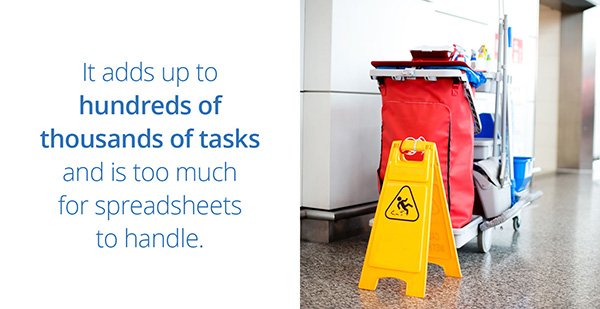 It adds up to hundreds of thousands of tasks and is too much for spreadsheets to handle.